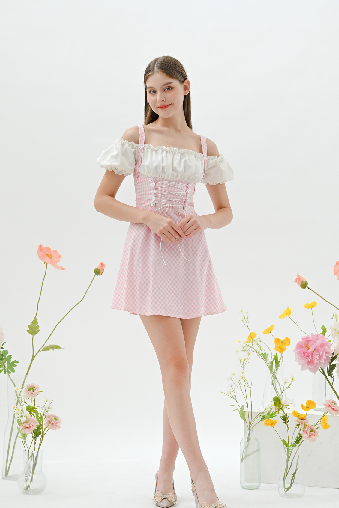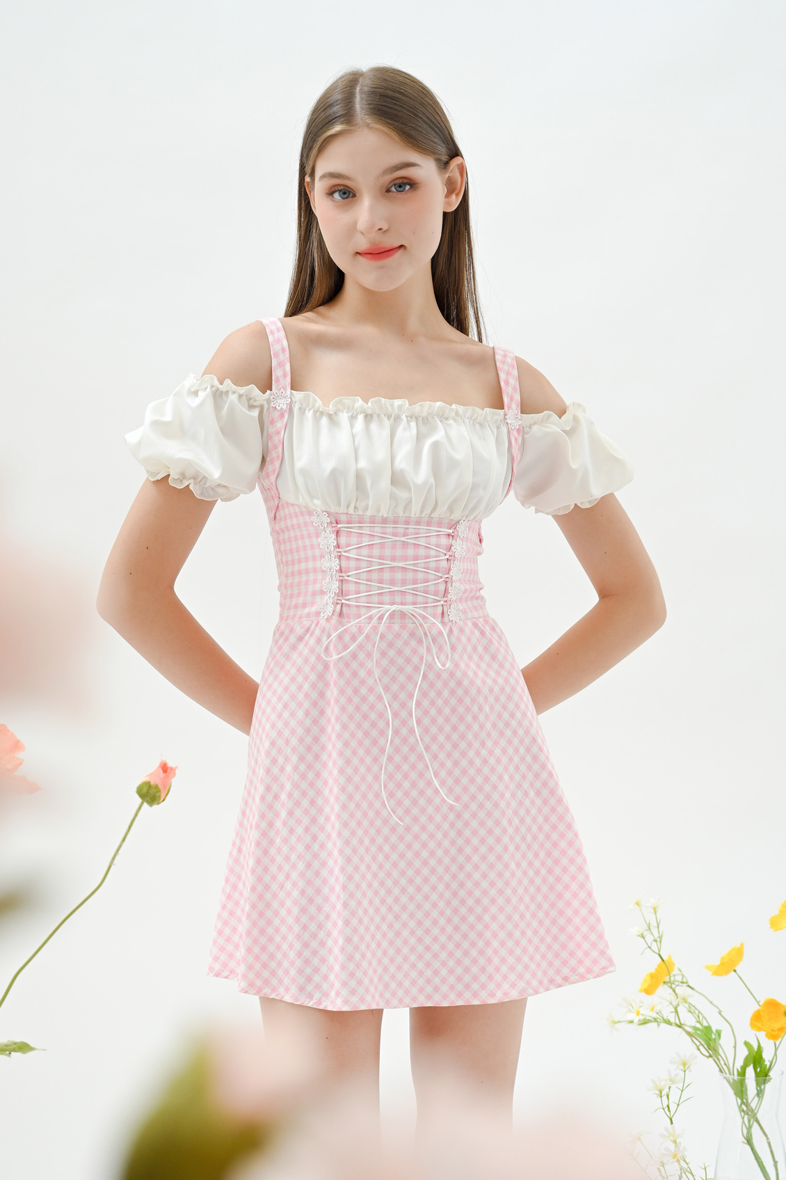 The Charlotte Dress is an off-the-shoulder milkmaid dress with lace-up waist detail and invisible zip closure at the back. The waist size for this dress is a bit bigger than what's stated on our size guide, as the corset-style waist is fully functional. Available in various fabric and color options.